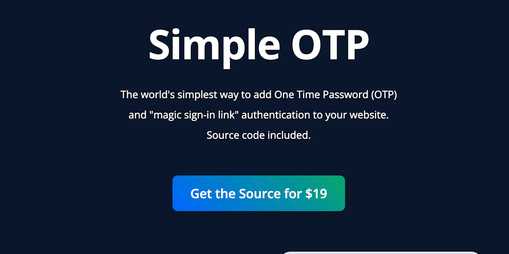 Simple OTP 2.0 - Passwordless, source-code-included auth for your website | Product Hunt