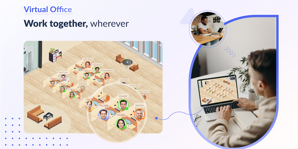 Empower remote teams with a virtual office that offers real-time visibility, seamless communication, and customized productivity insights —all for free