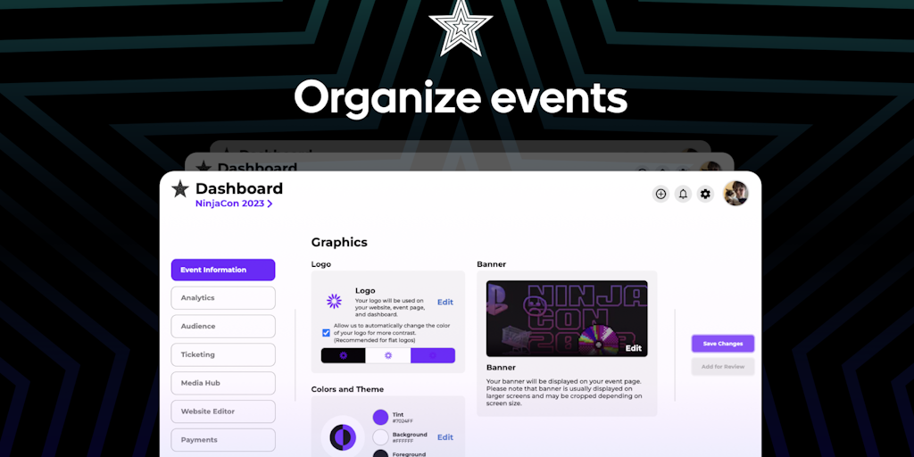 An event management platform for organizers. Create and sell tickets, collect payments, design a website, generate certificates/badges using your design, and share photos using our AI-powered Media Hu