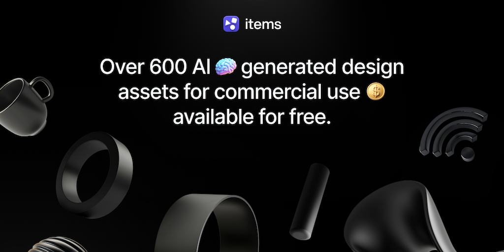 Items is a library of AI generated design assets, free to use however you want. Abstract backgrounds, shapes, images, real objects and much more to choose from. Also, every plus asset comes with a pro