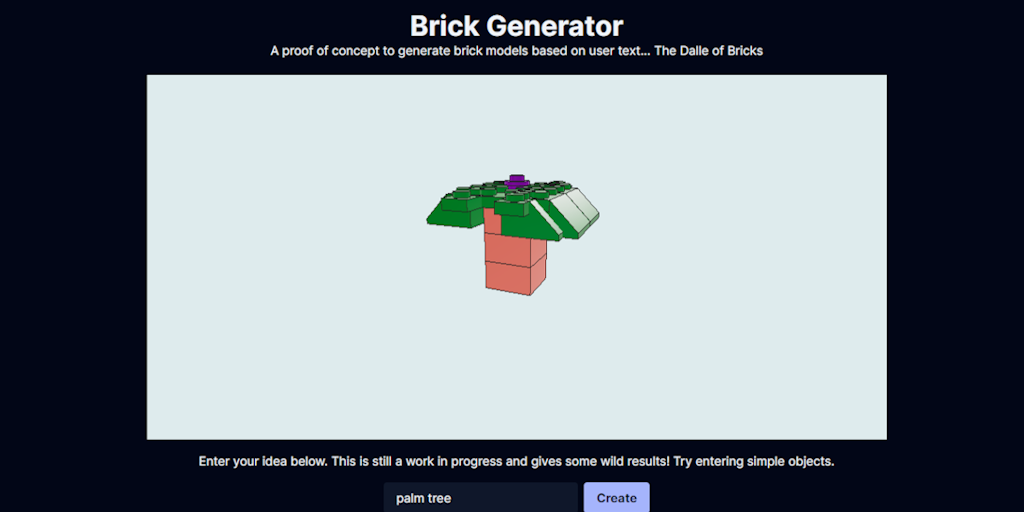 Turns text into Lego models. Designed for anyone curious about AI's creative potential, this proof of concept uses generative AI to create Ldraw code-based Lego designs from your descriptions. It's ea