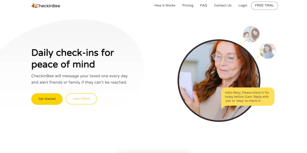 CheckinBee will check in with your loved one each and every day via text message. If a check-in is missed, their designated care circle will be automatically notified to check on them. $14.99/m with 2