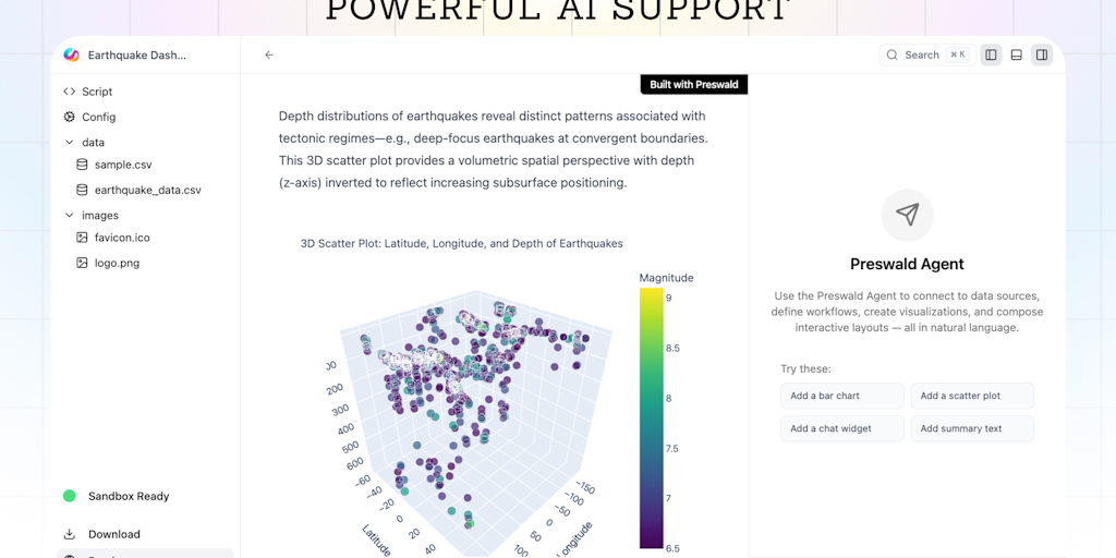 Preswald - AI agent for building data apps, dashboards and reports | Product Hunt