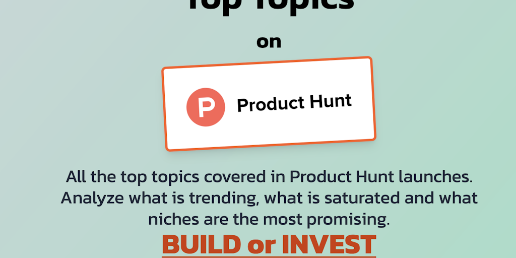 Product Hunt Topics brings you all the top topics covered in Product Hunt launches. Analyze what is trending, what is saturated and what niches dominate the Product Hunt leaderboard.