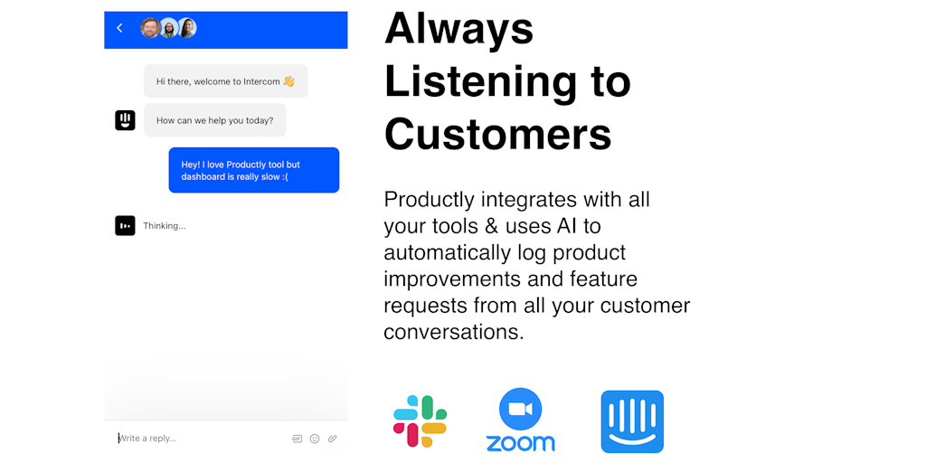 Productly uses AI to automatically find & log product feedback from all the customer conversations happening anywhere inside your company in a single place! Get AI powered weekly feedback summaries &