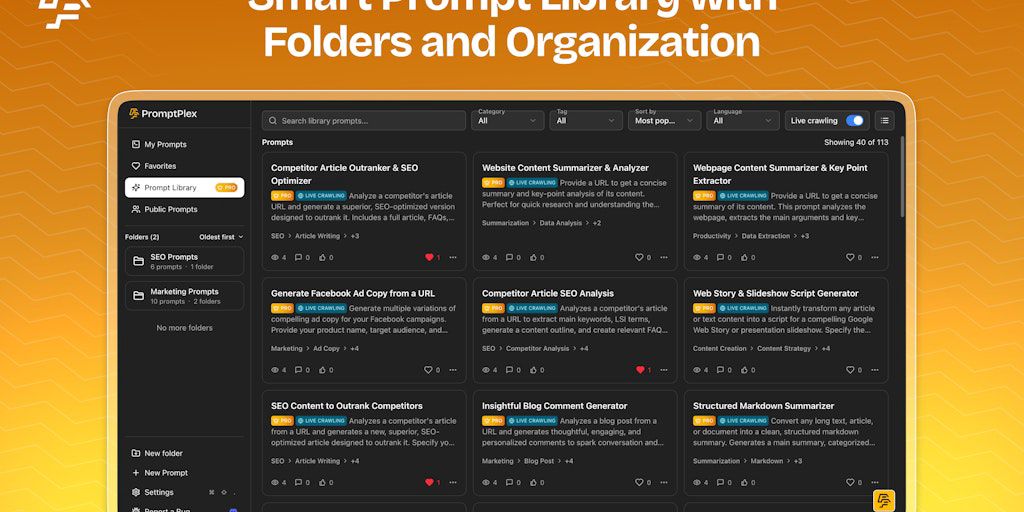 Stop losing great prompts. PromptPlex is the ultimate toolkit to master your AI workflow. Build a powerful, searchable library with smart folders and dynamic variables for ChatGPT, Claude, Gemini & mo