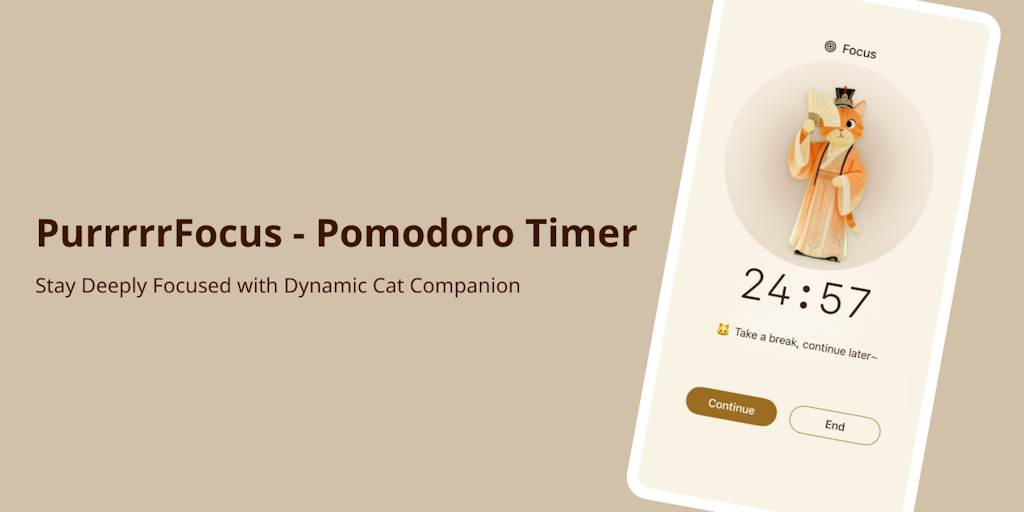 PurrrrrFocus transforms productivity into an engaging experience with 8 unique cat companions and elegant Chinese-inspired themes. Features flexible Pomodoro & count-up timers, comprehensive analytics