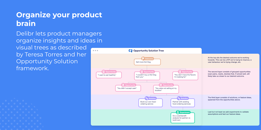 With Delibr, teams can create opportunity trees, collaborate on product requirements, build user story maps, and much more - all in a single app. Our latest addition is an AI that can take action base