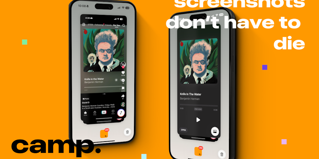 Screenshots are one of the easiest ways to save content on your phone. Camp supercharges your screen capture flow by automatically detecting and extracting information you care about.