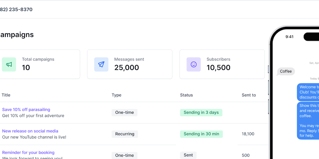 Textla is a no-code SMS messaging platform for SMBs, startups and high-growth companies. Schedule SMS campaigns, set up keyword opt-ins, communicate 1:1 via shared inbox, track analytics, and view del