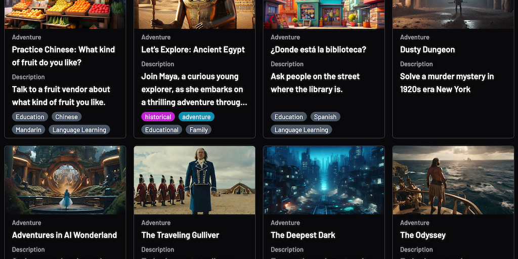 AI Adventure is a gaming community and open-source gaming system. Play and create your own narrative adventure games, aided by the storytelling power of AI. Or jump into a community-made game with cha
