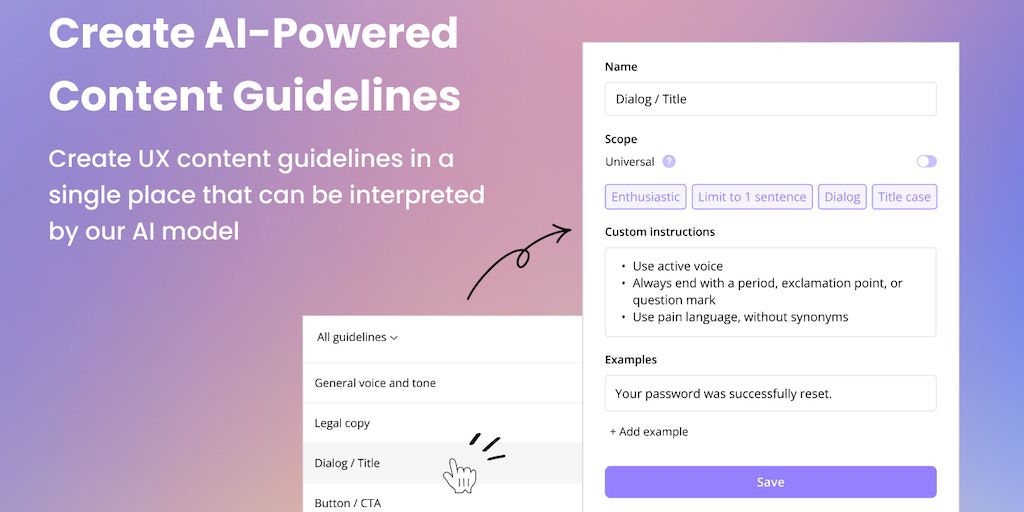 UX Writing Assistant for Teams - Craft consistent UX content at scale with the power of AI | Product Hunt