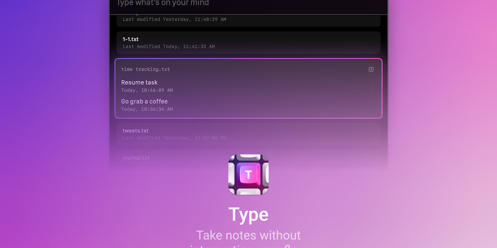 Type lets you quickly jot things down with the timestamp attached, without interrupting your flow.