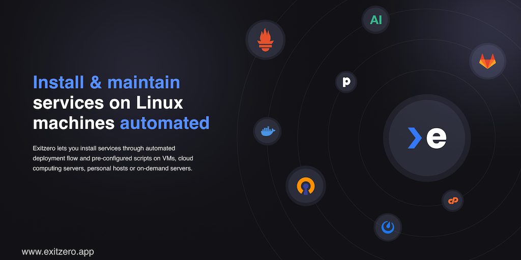 Exitzero enables seamless access to automated installation of services and cloud infrastructures, all through a simple (no-code) graphic interface. Create and supercharge working environments effortle