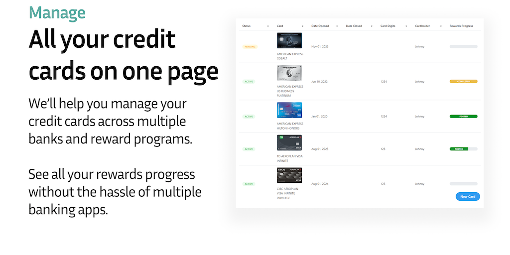 Track, manage, and optimize your credit cards like a pro with Cardtrackr. Say goodbye to spreadsheets and hello to personalized goals, powerful insights, and effortless card management.