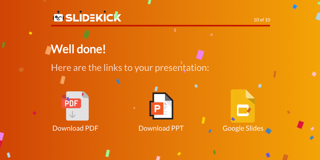 Slidekick is your personal AI presentation assistant. It asks you a few questions about the slide deck you want to make and then creates it for you. This is a beta version. It has 1 use case: creating