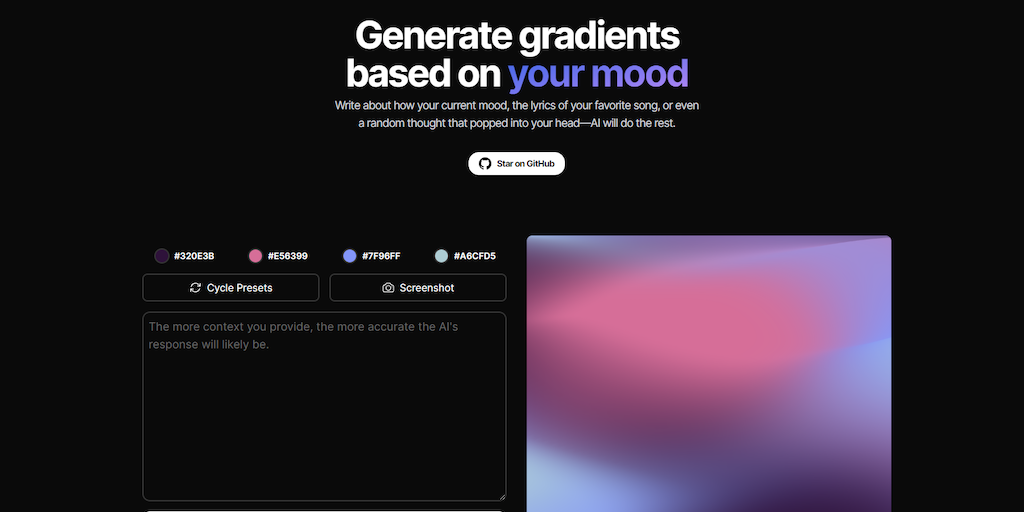Chroma AI - Generate beautiful gradients based on your mood using AI | Product Hunt