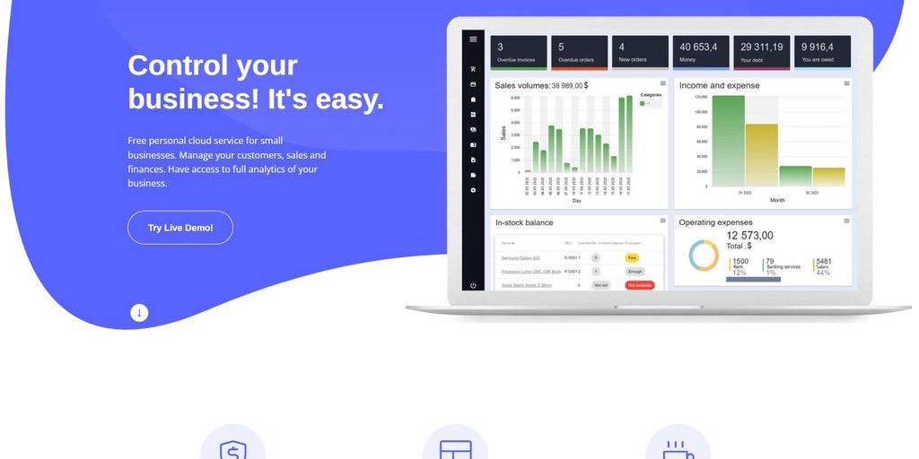 Dokio is a sales, finance and warehouse management system. It is implemented as a web application, and it might be installed on your VPS-server, or you can use it on website dokio.me as a service. It'