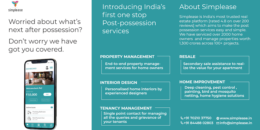 Simplease is a digital property management company offering services in several cities including Mumbai and Gurgaon. We currently manage over 800 properties with over Rs1300 crores of assets under man