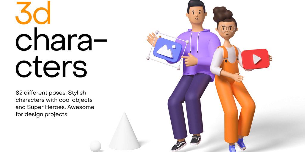 Humans 3d characters (v3.0) - is a huge library of stylish 3d characters in different poses for design projects.