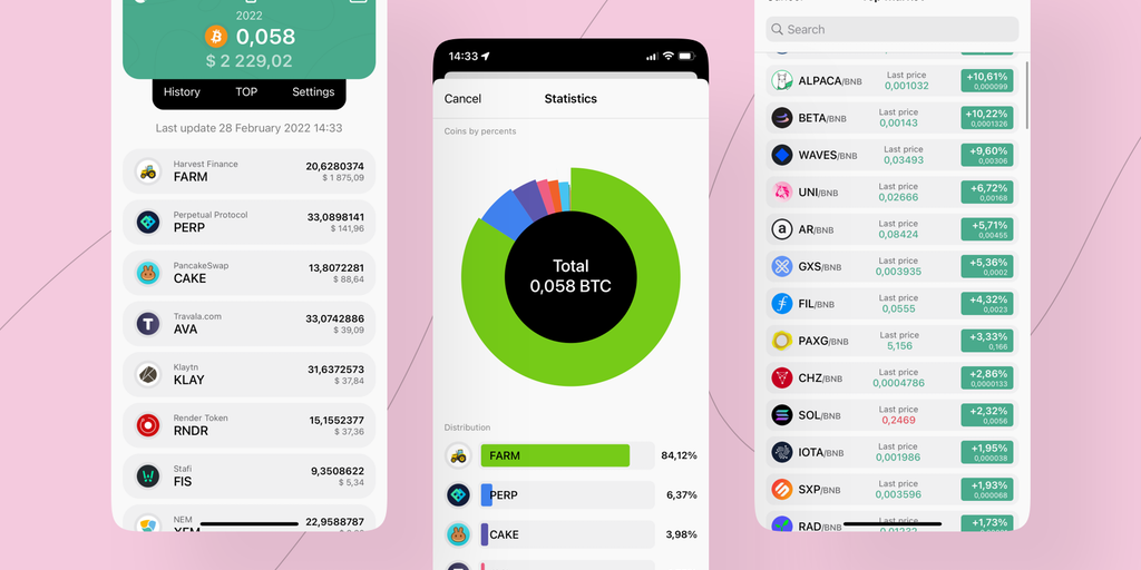 Cryptofolio is a mobile application for building a portfolio and tracking the dynamics and rates of cryptocurrencies. Attention, the Cryptofolio app is not intended to buy and sell coins, but its main