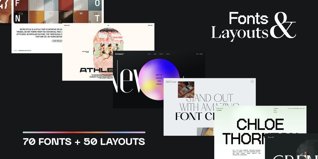 Fonts & Layouts is collection web layout templates inspired by amazing free fonts. In this collection you will find 50 layouts and 70 fonts with link where you can download it.