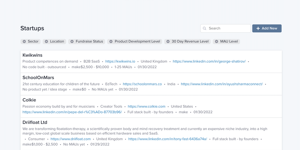 We're building a better way to connect with others in tech. Founders, job seekers, and investors can upload information about themselves to a database for free. Our pro plan enables them to look at ot