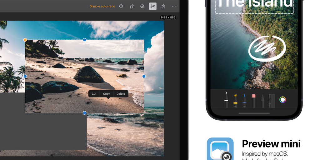 Preview mini takes the simplicity of the macOS Preview app to your iPhone and iPad. Enjoy desktop-like image editing in a minimalistic workflow and design. Snip, cut, and paste image parts. Add drawin