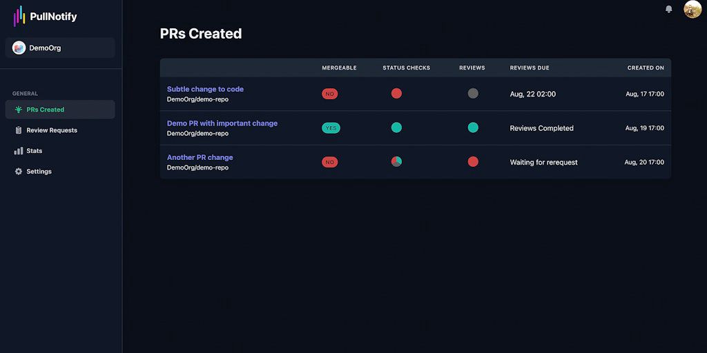 PullNotify improves upon GitHub's standard pull request view, presenting a streamlined display of your PRs and review requests. Stay updated with timely Slack notifications and delve deep into insight