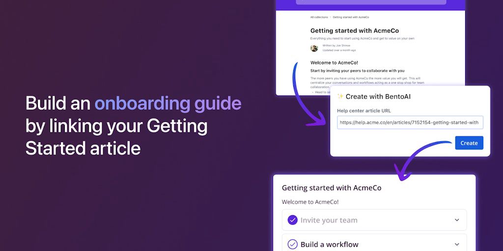 Bento allows product teams to add native-looking onboarding checklists and feature activation UX into their product with no code. Now with BentoAI, these guides can be generated by pasting in existing
