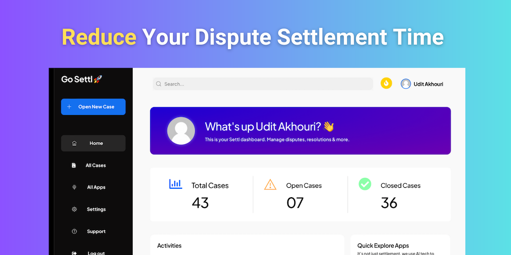 Big growth in startups invites big disputes, refunds & cancellations. Introducing Settl - your now go-to platform to manage disputes by yourself (negotiation), let us mediate (arbitration) or escalate