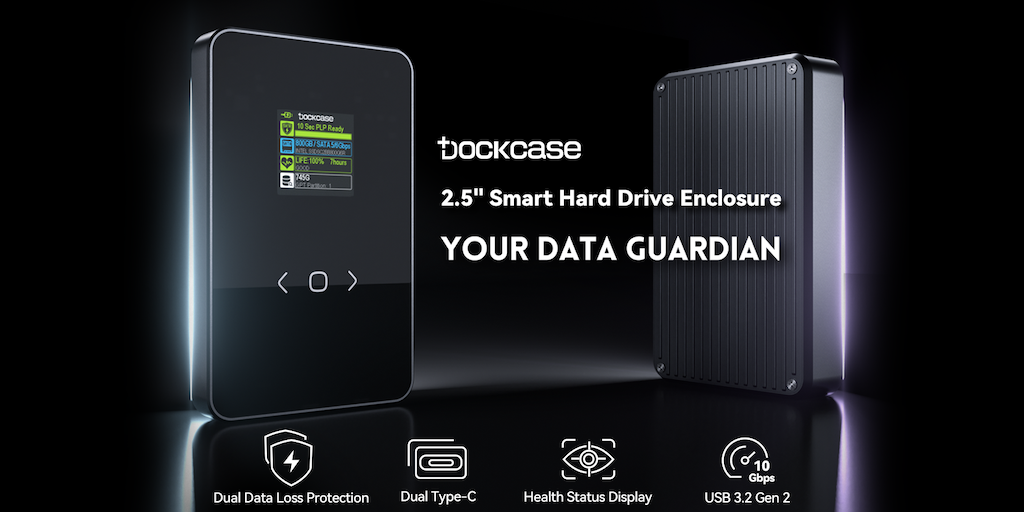 Dockcase 2.5" Smart Hard Drive Enclosure is the safest companion for 2.5" 7-15mm SATA HDD and SSD. PLP technology guarantees an additional 10 seconds of cache data writing time during power outage, wi