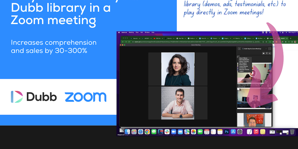 The Dubb App for Zoom allows you to play recorded videos from your Dubb account or YouTube. This is a HUGE game changer to increase productivity, attendee satisfaction, and sales conversions in your l