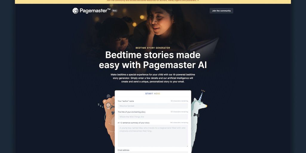 Pagemaster | Bedtime Story Generator - Create a kid's book & educational activities with a click | Product Hunt