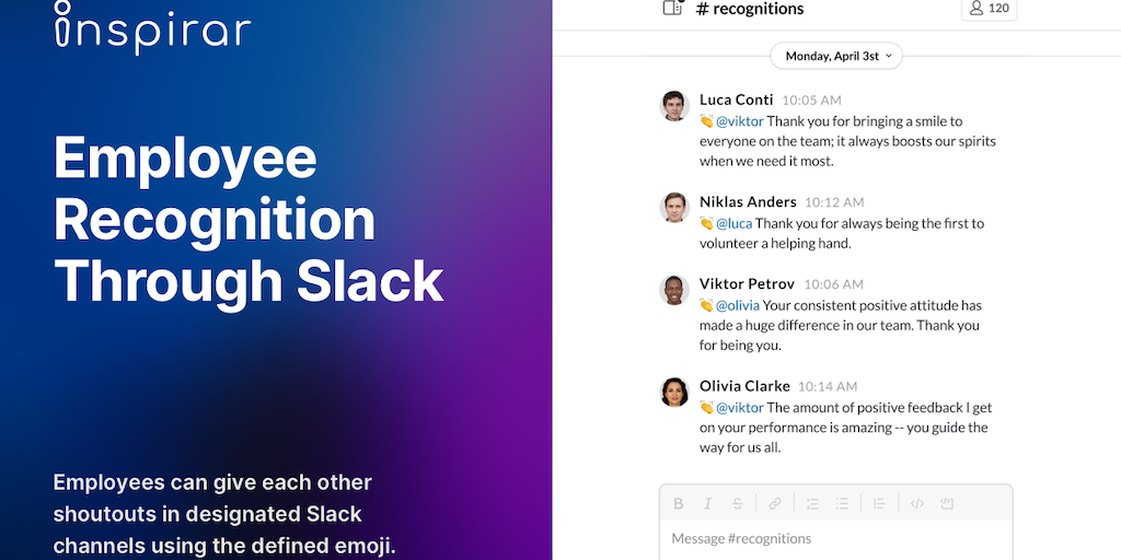 Inspirar Employee Recognitions in Slack - Boost A Remote Team Morale Through Employee Recognitions | Product Hunt