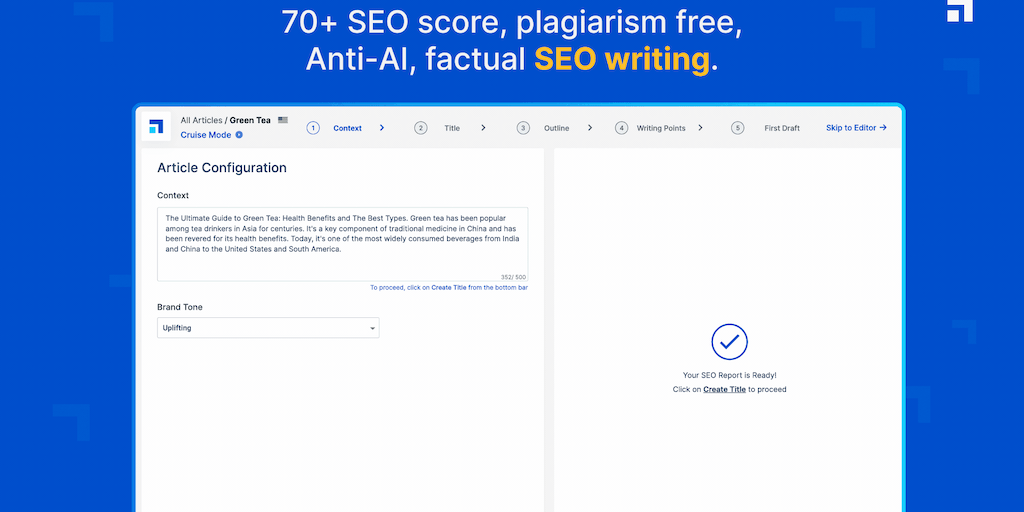Scalenut automates the entire SEO workflow. Saves 90% of time and delivers 10x organic traffic. The only platform that gets you a powerful SEO strategy, beats your competitors, creates content at scal