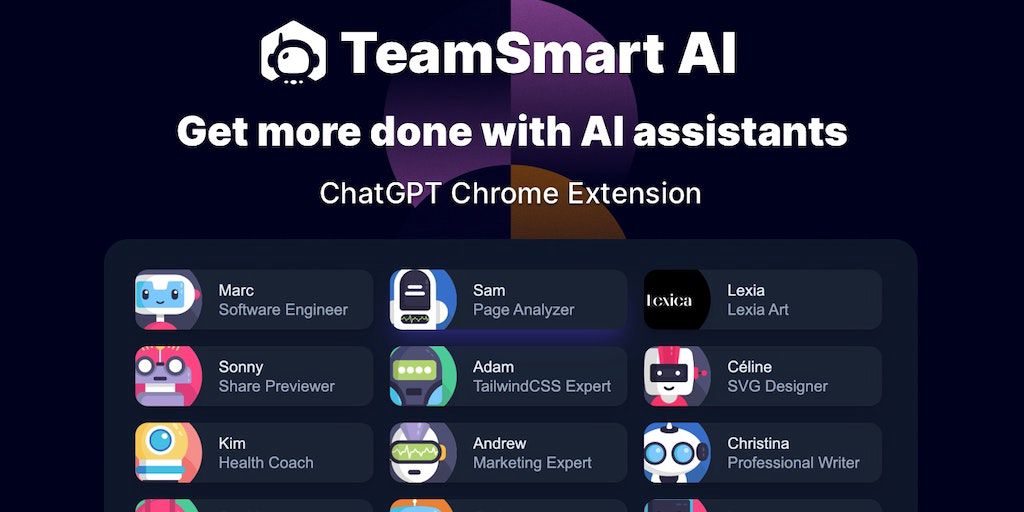 TeamSmart AI is a Chrome extension that provides a variety of AI assistants to help you to get more things done. Use your own OpenAI API key and integrate ChatGPT seamlessly into your browser.