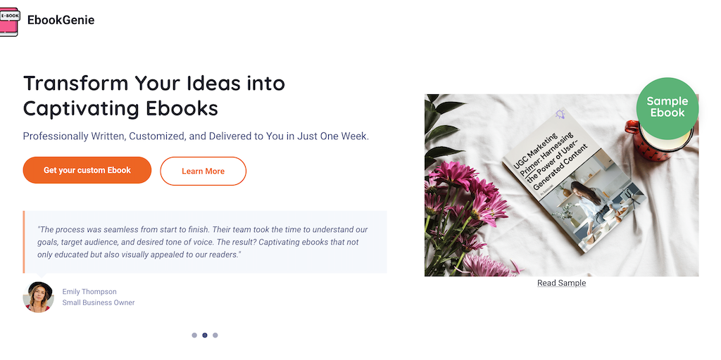 Transform Your Ideas into Captivating Ebooks. Professionally Written, Customized, and Delivered to You in Just One Week. EbookGenie is for Entrepreneurs and Solopreneurs, Small and Medium-Sized Busine