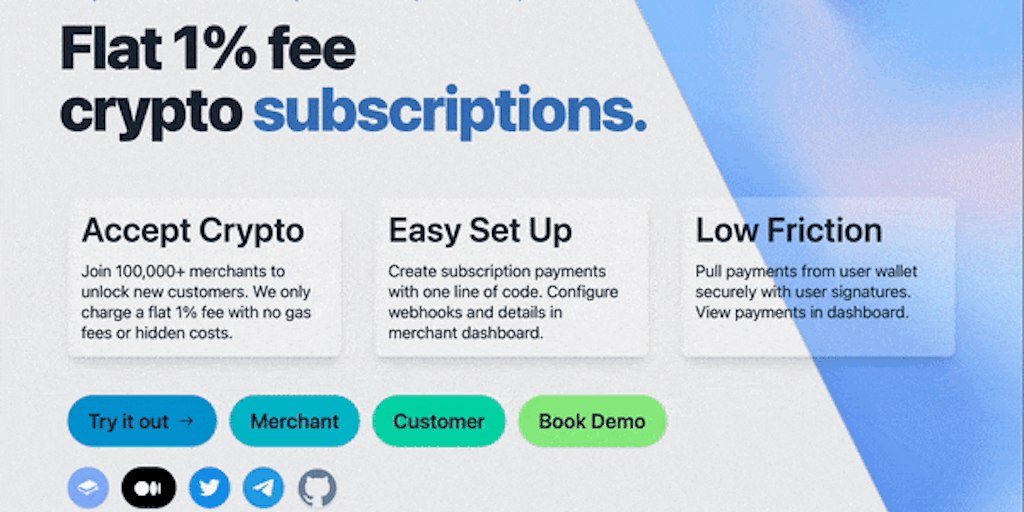 Rapids Finance brings an innovative approach to crypto subscriptions, eliminating customer-facing gas fees. The platform prioritizes merchant ease with quick setup with a 1% transaction fee, making re