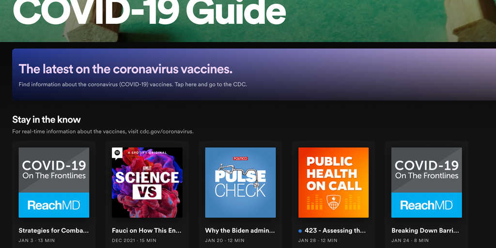 Spotify's COVID-19 Hub - Easy access to data-driven facts, info, and trusted sources | Product Hunt