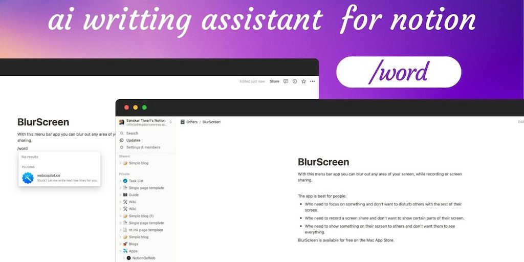 WebCopilot - AI Writer for Notion, plug GPT-3 into all of your writing | Product Hunt