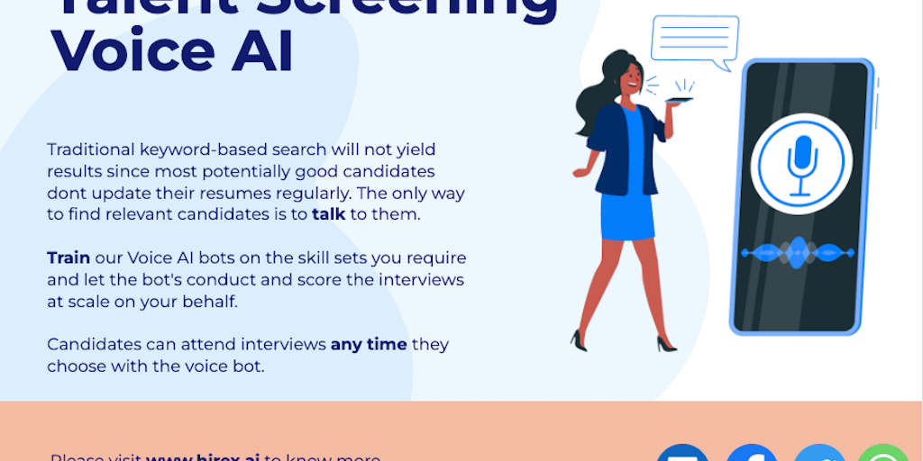 hirex.ai is a no-code voice AI platform to build voice based bots that conduct and score level one interviews at scale. You could practically conduct 10,000+ interviews in a single day without any hum