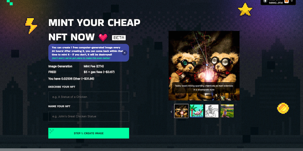 Cheap NFT Art - Create your own AI-generated NFT easily and affordably | Product Hunt