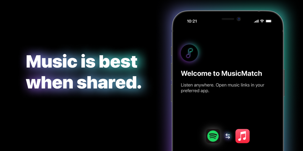 Music is best when shared. With MusicMatch, friends can share and open music links even if they use different streaming services, like Spotify and Apple Music.