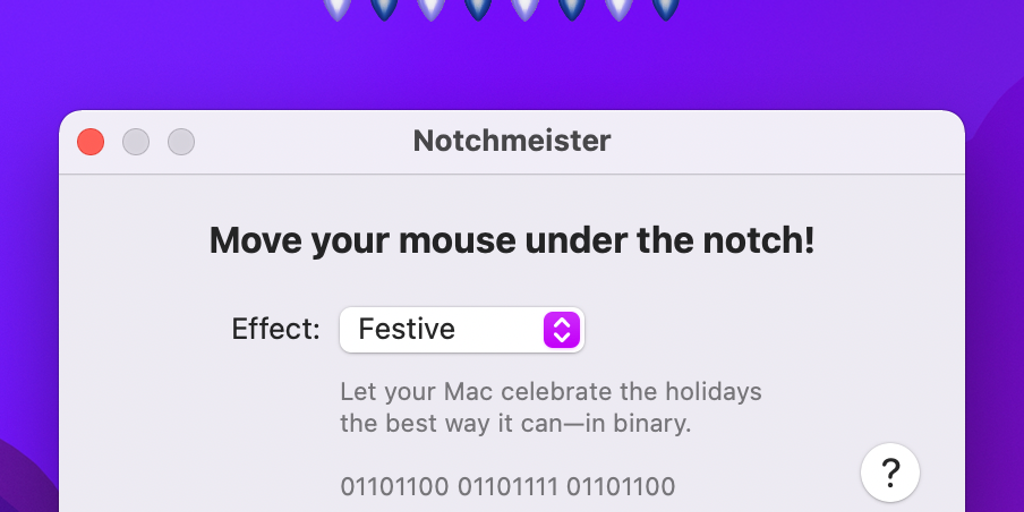Have you ever wondered what happens to your mouse while it's travelling underneath the notch? Notchmeister answers that question with exciting effects: Glow, Cylon, Plasma Leak, Festive, and Nano Rada