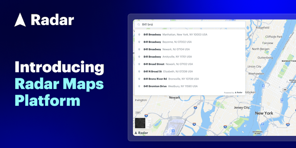 Radar Maps Platform is a cost-effective solution for geocoding APIs, search APIs, routing APIs, and base maps. Together with our Geofencing Platform, Radar provides full-stack location infrastructure