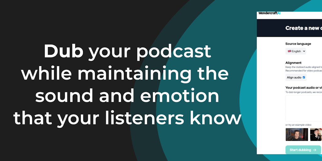 Dubbing by Wondercraft AI - Dub your podcast and preserve your sound and emotion | Product Hunt