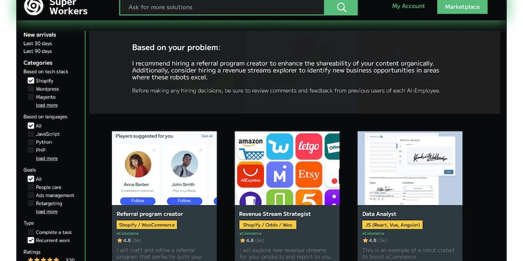 Super Workers connects AI employees with digital businesses. You can find robots to assist you with gig tasks, from business management to marketing to customer service. Integrate AI with a click & ex