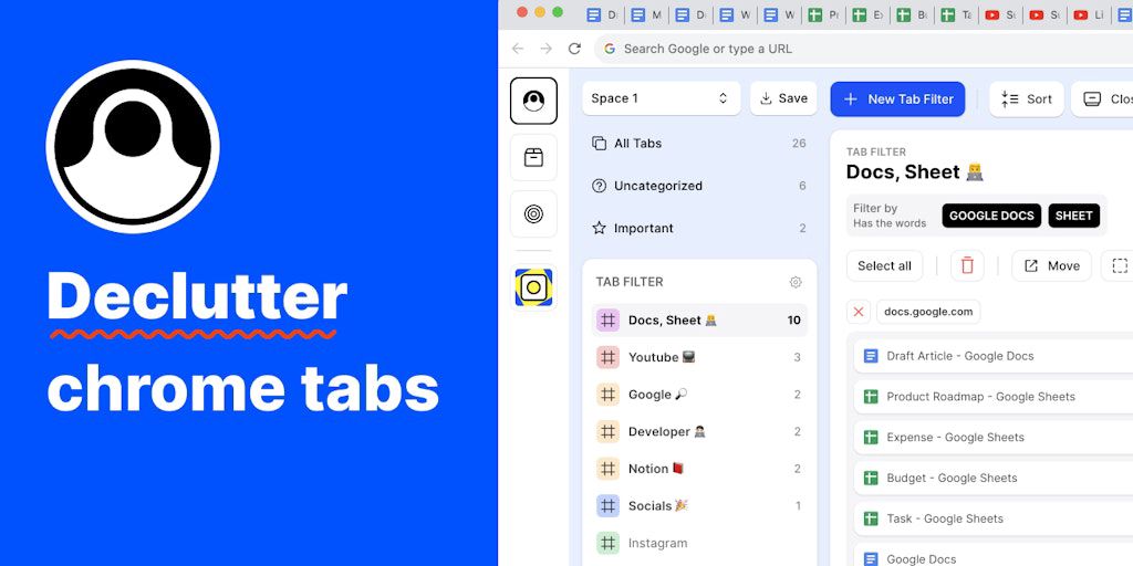 We want to help you to work with a lot of tabs easier! TabBrew can declutter your Chrome tabs. TabBrew sidebar can help you to have more focus on your work tabs!