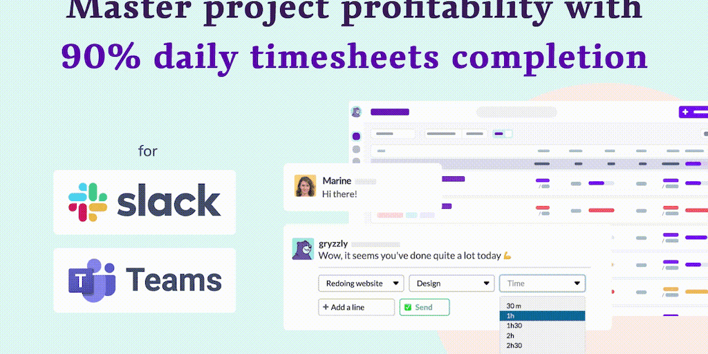 Elevate your business's profitability with Gryzzly : Your team-favorite Slack and Microsoft Teams chatbot that simplifies time tracking, boosts billable hours and enhances budget control. 🦾 Supercharg